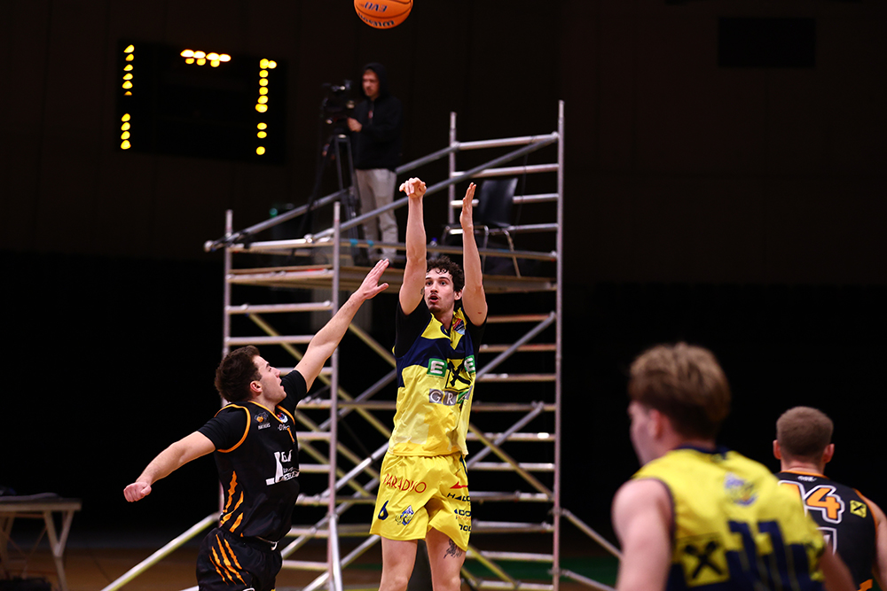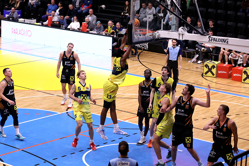 Eine Wurfquote von 71% im Zweipunktebereich und 52% bei den Dreipunktewürfe von Graz macht den Unterschied beim ersten Steirer Derby der 2025/2026 Basketballsuperliga Saison aus. Vor zahlreichen Fans (900) im Raiffeisen Sportpark bauten die Grazer ihren Vorsprung immer weiter aus und konnte gegen die stark kämpfenden Fürstenfelder mit 95:79 beim ORF Sport Plus übertragenden Spiel ihren zweiten Sieg einfahren.